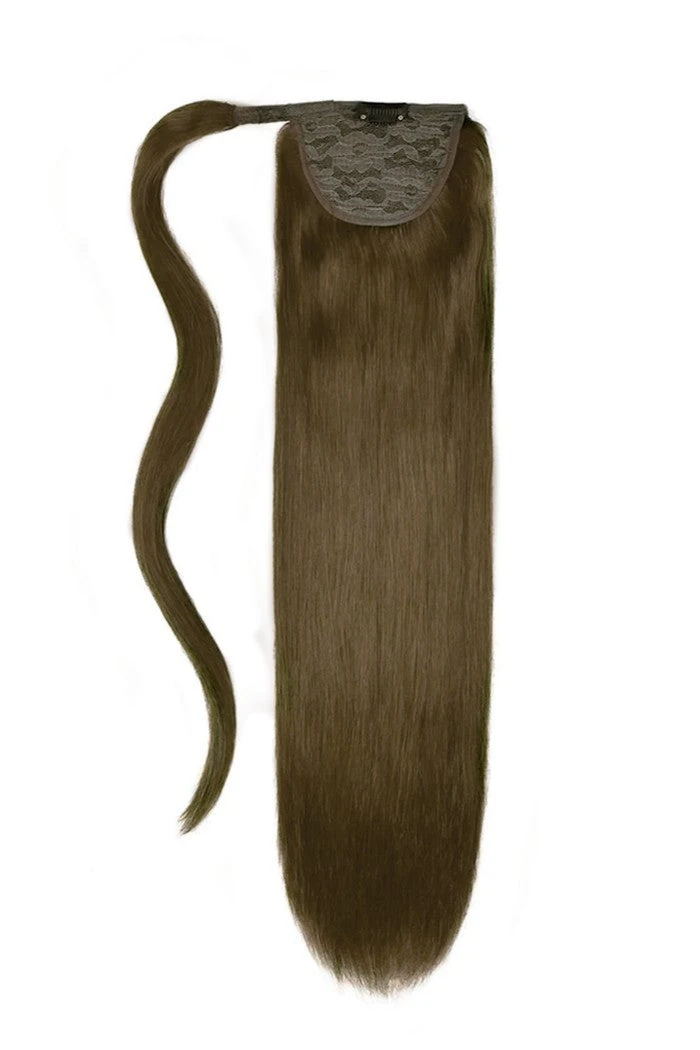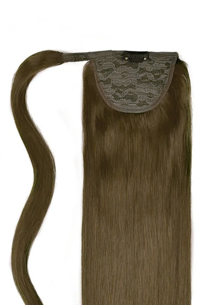 Remix your style with our vibrant silky Ash Brown (#9) Straight Up Wrap Around Ponytail, made from real Remy human hair. Available in three lustrous lengths and endless styles at your fingertips, our new blonde ponytail extensions are sure to become a celebrity staple.