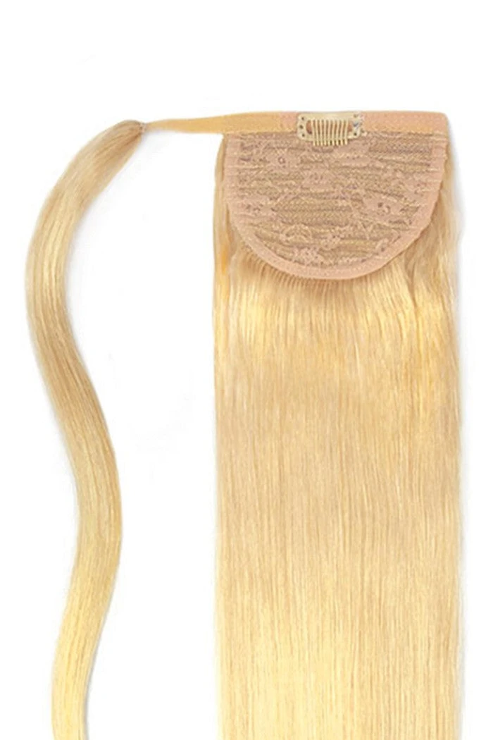 Introducing our best selling silky Bleach Blonde (#613) Straight Up Wrap Around Ponytail, made from real human hair. Available in three lavish lengths and endless styles at your fingertips, our lightest shade of ponytail extensions are sure to become a celebrity favourite.