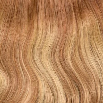 One piece clip in hair extension in Cinnamon Swirl Balayage.