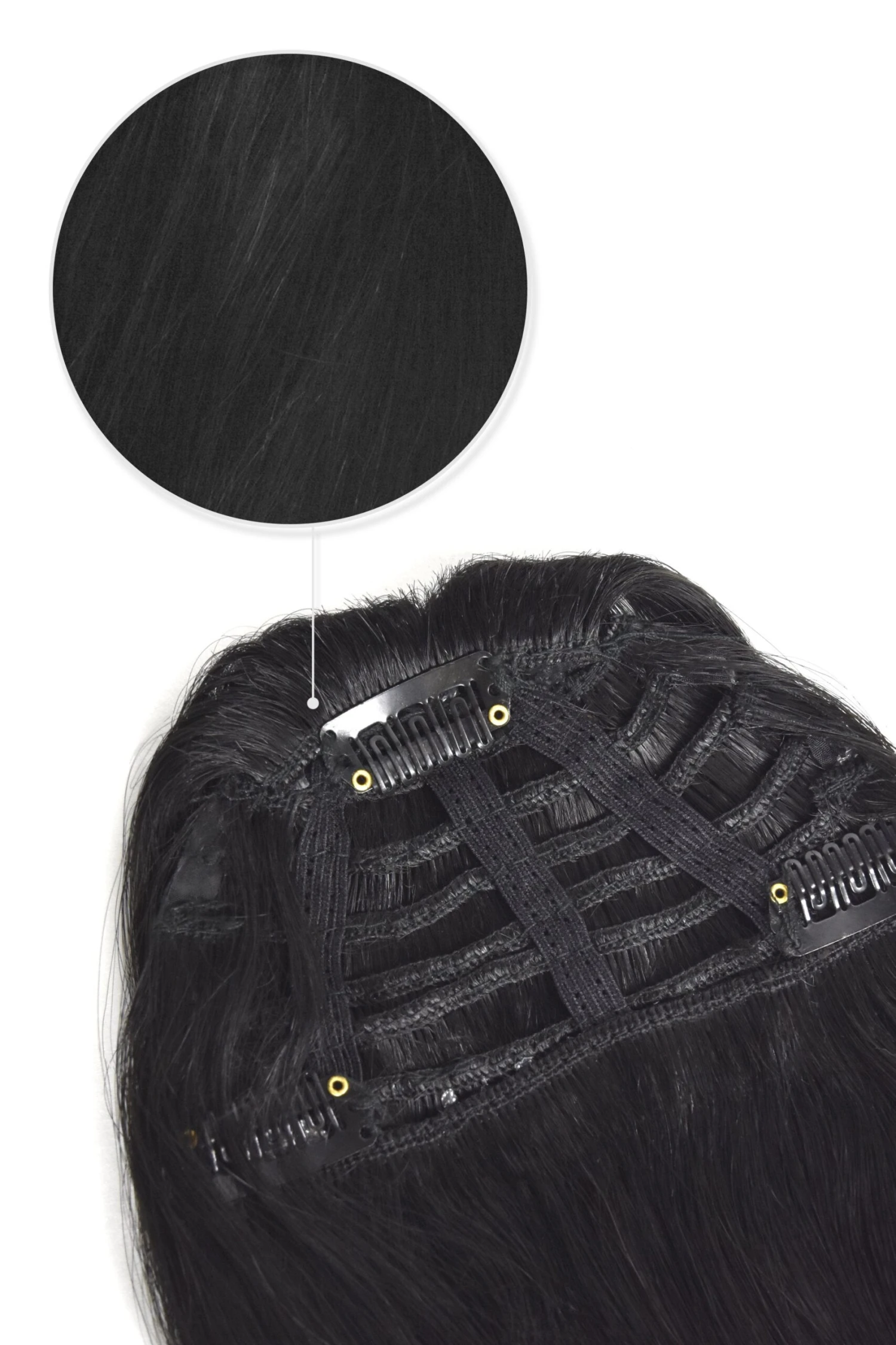 This Natural Black clip in fringe hair set comes complete with 3 metal clips already attached to the weft complete with silicone tubing for a secure grip.