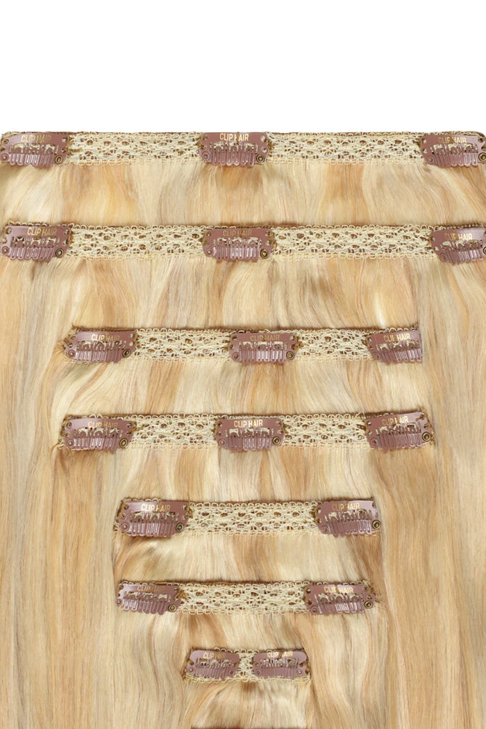 Double Wefted Full Head Remy Clip In Human Hair Extensions – Barbie Blonde (#16/60)(Double Wefted Full Head Remy Clip In Human Hair Extensions Barbie Blonde 16 60)