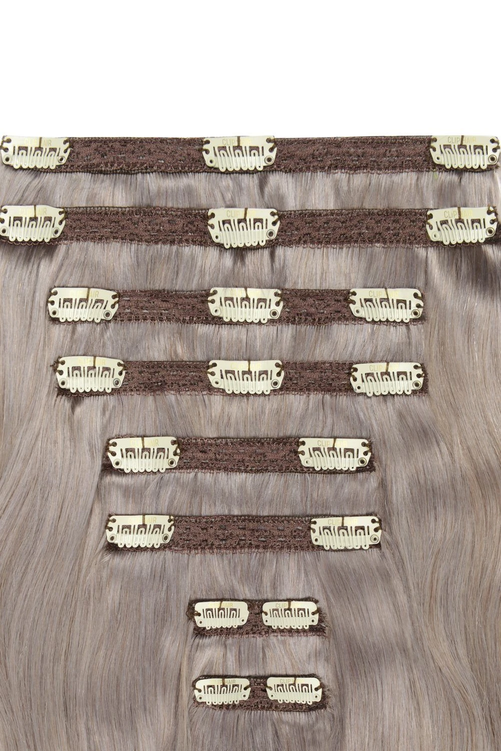 Double Wefted Full Head Remy Clip In Human Hair Extensions – Silver / Grey (#SG)(Double Wefted Full Head Remy Clip In Human Hair Extensions Silver Grey Sg)