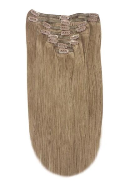 This Medium Ash Brown clip in hair set comes complete with 18 metal clips already attached to the wefts complete with silicone tubing for a secure grip.