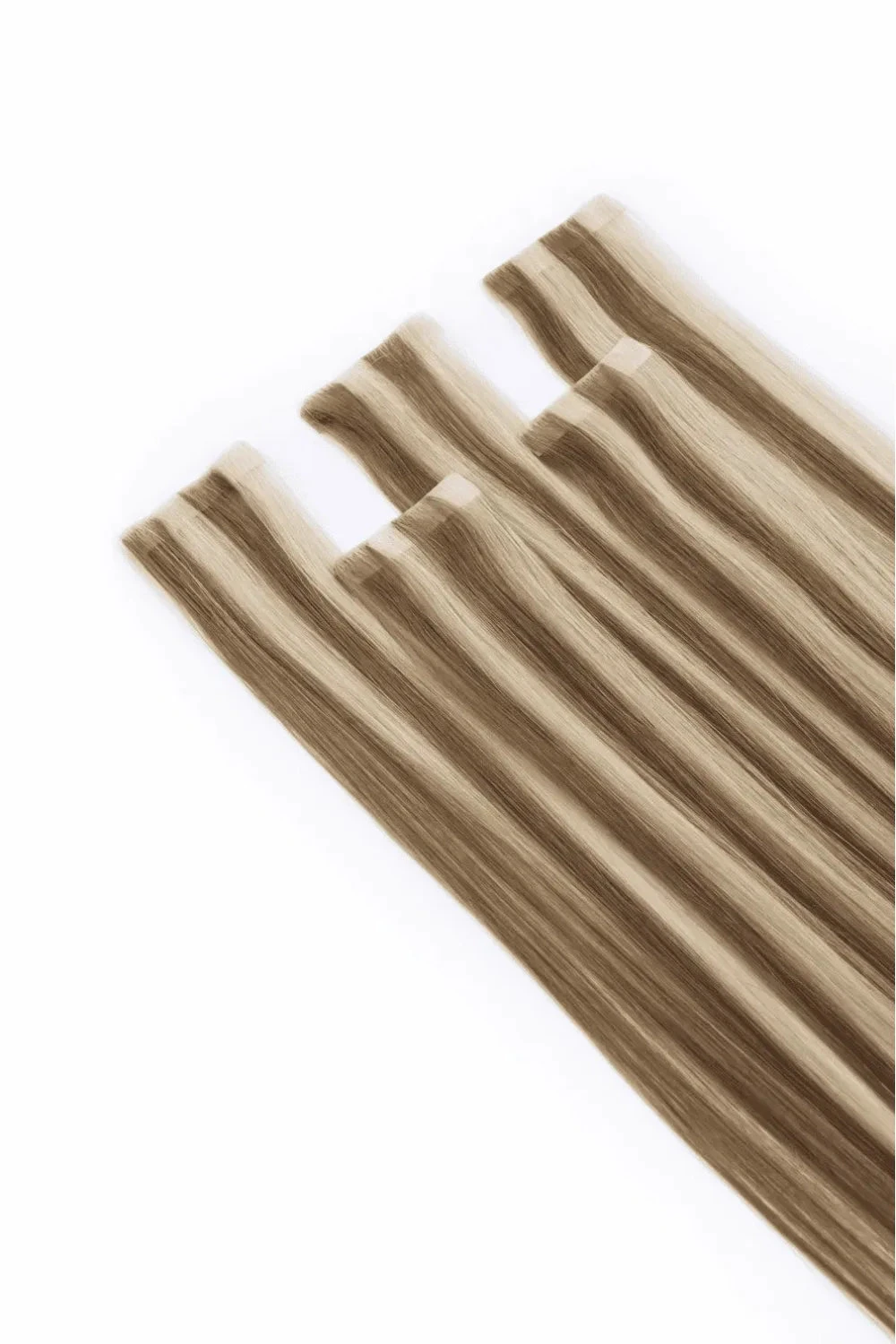 The latest innovation in tape in hair extensions, these tapes’ hair strands go all the way up to the tab, becoming the true champions of discretion. These hair extensions are super quick and easy to apply, virtually undetectable as they blend with the natural hair and offer incredible flexibility and comfort to those who prefer to wear their hair down. Made from AAAAA grade, double drawn, top quality, Remy human hair our Invisible Tapes come in 20 colours and 4 lengths.