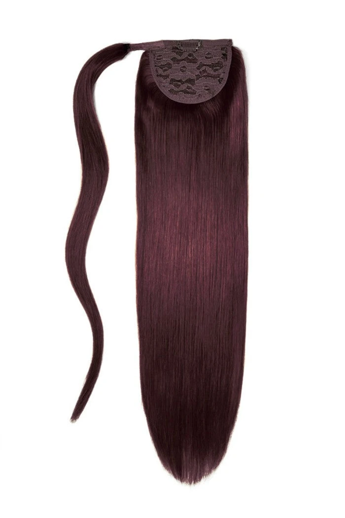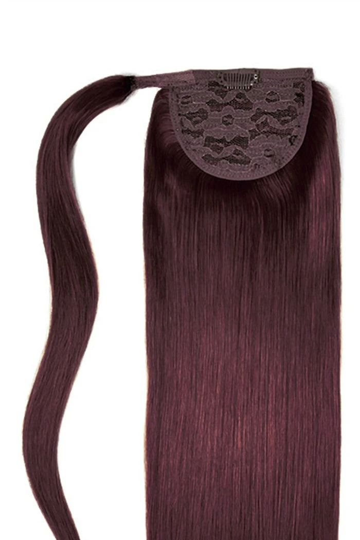 Introducing our vibrant and melting shade of Mahogany Red (#99J) Straight Up Wrap Around Ponytail, available in three lavish lengths and made from Remy human hair.