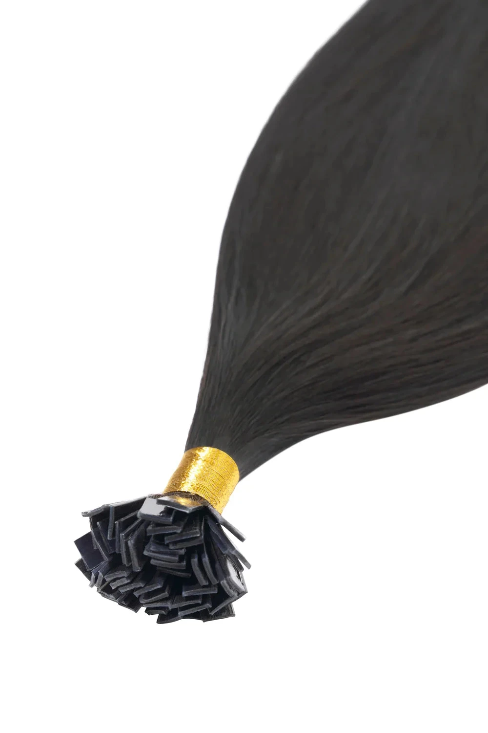 Our Remy Royale Flat Tips provide a discreet, low maintenance, long lasting and comfortable pre-bonded extension option to your clients. These sturdy hair extensions will stay in place for up to three months with little to no shedding. Made from AAAAA grade, double drawn, remy human hair their flatter surface is easier to heat and mould around the natural hair.