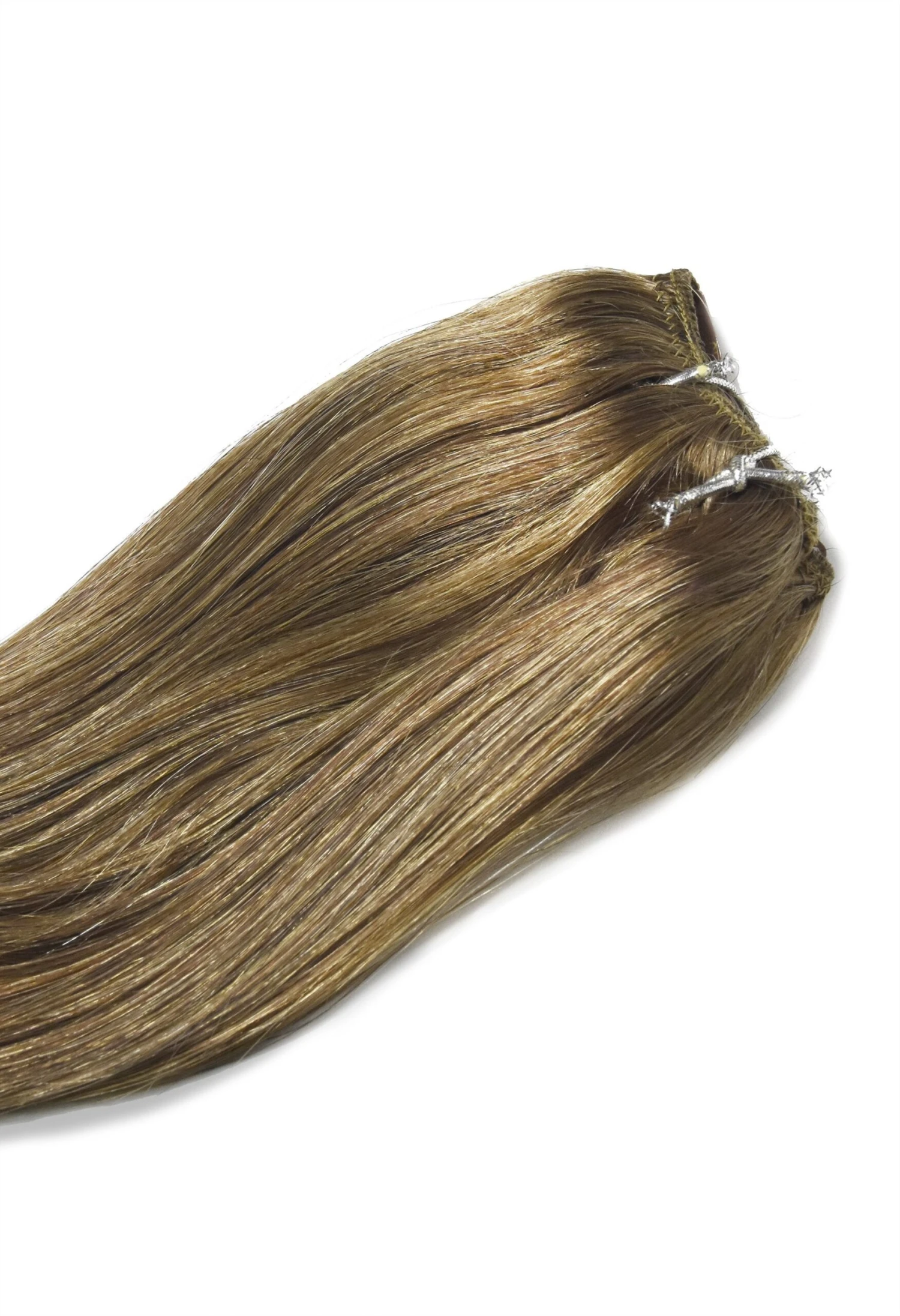 This is the fastest way to extend your hair. A single section usually applied to the back of the head using the five attached clips.