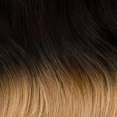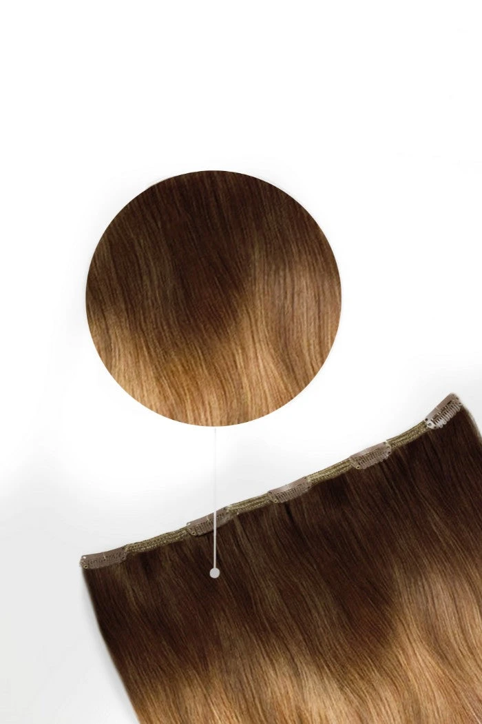 One piece clip in hair extension in Espresso Honey Ombre (#T2/27).