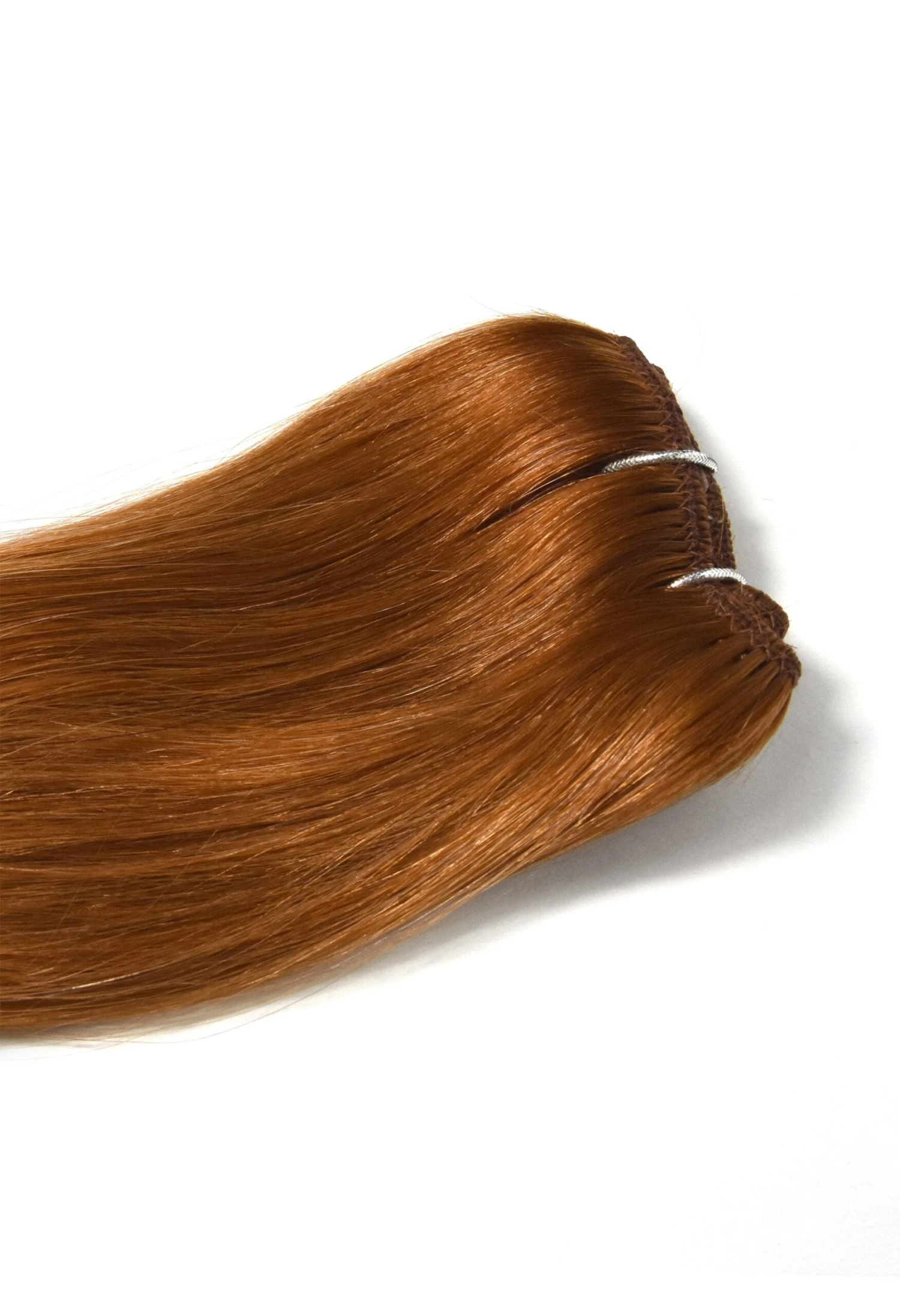 One piece clip in hair extension in Ginger/Natural Red (#350).