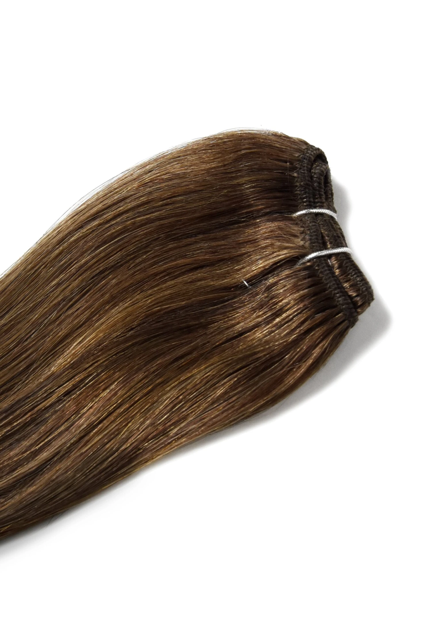This is the fastest way to extend your hair. A single section usually applied to the back of the head using the five attached clips.