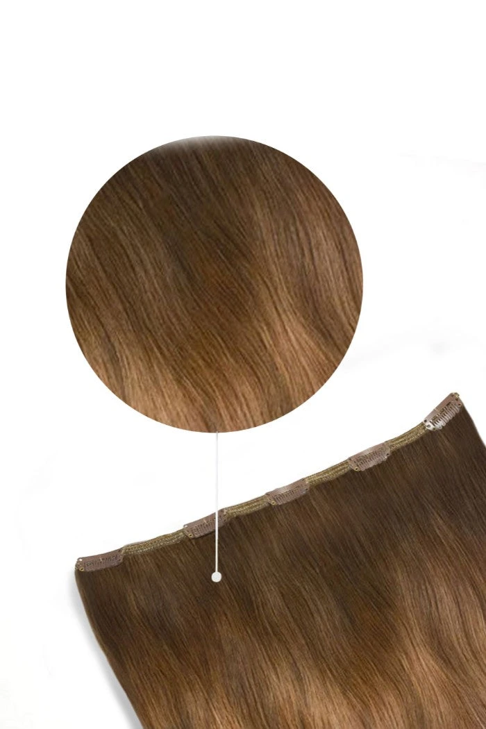 One piece clip in hair extension in Soft Bronze Balayage.