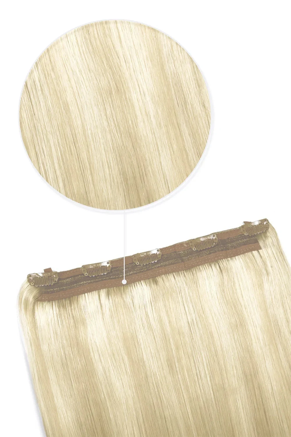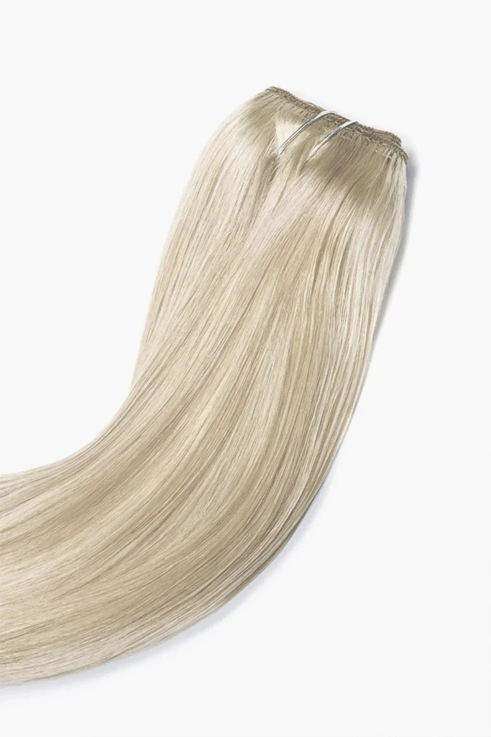 The Quad Weft is a revolutionary hairpiece containing FOUR strips of hair securely sewn onto one thick weft. The 10 inch wide piece securely clips on to your head, from ear to ear – instantly adding length and thickness for a complete hair transformation. One Quad Weft contains nearly as much as full head set, and if you want a really thick and luscious look, why not pop on two – giving you nearly as much thickness as a double wefted set in two simple steps.