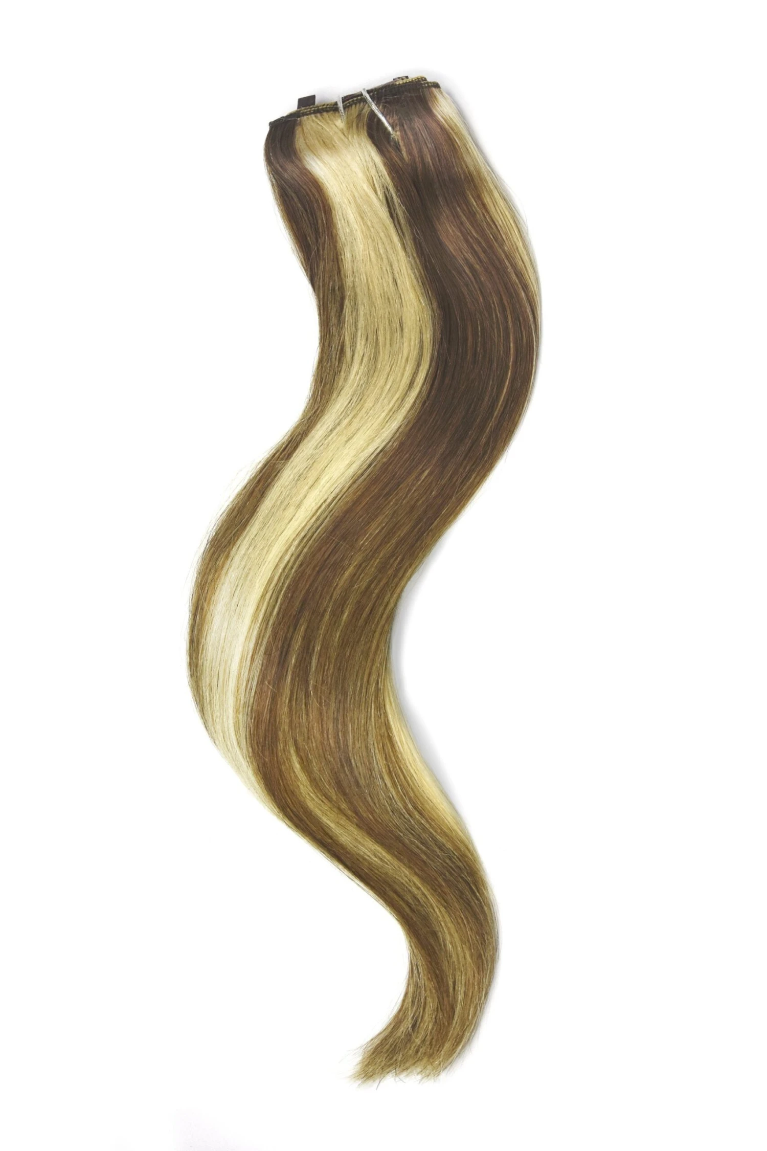 Quad Wefted Remy Clip In Human Hair Extensions – Chestnut Bronde (#6/613)(Quad Wefted Remy Clip In Human Hair Extensions Brown Blonde Mix 6 613)