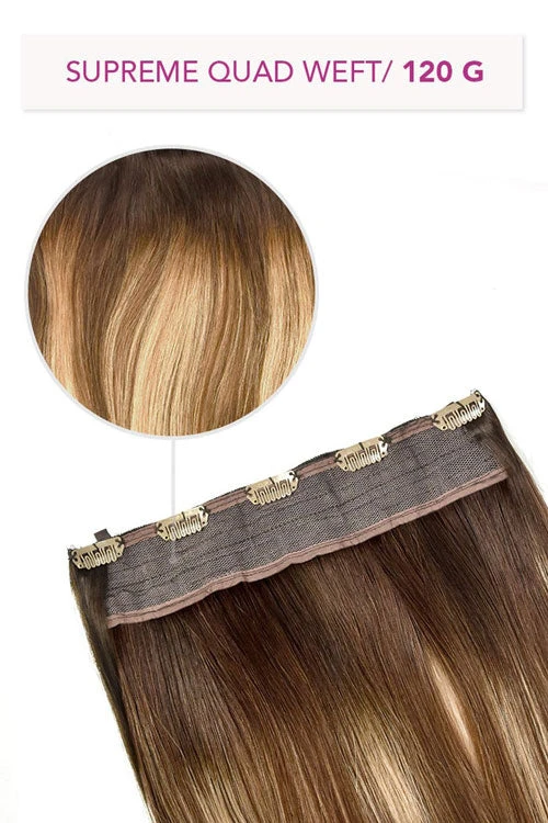 Giving you more hair, less clips, and just as discreet and undetectable as our single and double weft sets, our Supreme Quad Weft hair extensions are an instant solution for the ultimate volume and maximum comfort.