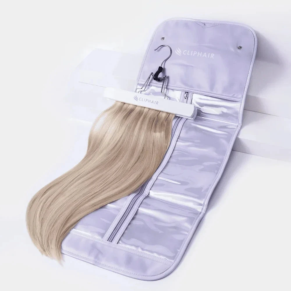 Transform your look for the holiday season with the Winter Wonderland Volume Bundle. Featuring the clip-in extensions of your choice, whether you want ultra volume, seamless waves, or curly glamour – this bundle ensures your hair looks its best. With the added convenience of our hanger and carrier, you can easily store your extensions after all the Christmas and New Year’s festivities, keeping them tangle-free and pristine.